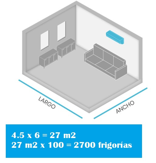 Para seleccionar la capacidad del aire acondicionado debemos contar con el aréa de la habitación que deseamos enfriar y para esto necesitaremos de un flexómetro o metro. Mide el largo y ancho de la habitación en metros, y multiplica ambas medidas para calcular los metros cuadrados que deseas enfriar, luego selecciona la capacidad del aire acondicionado portátil en la tabla de selección (estos datos son aproximados y pueden variar de acuerda a las condiciones del espacio).
